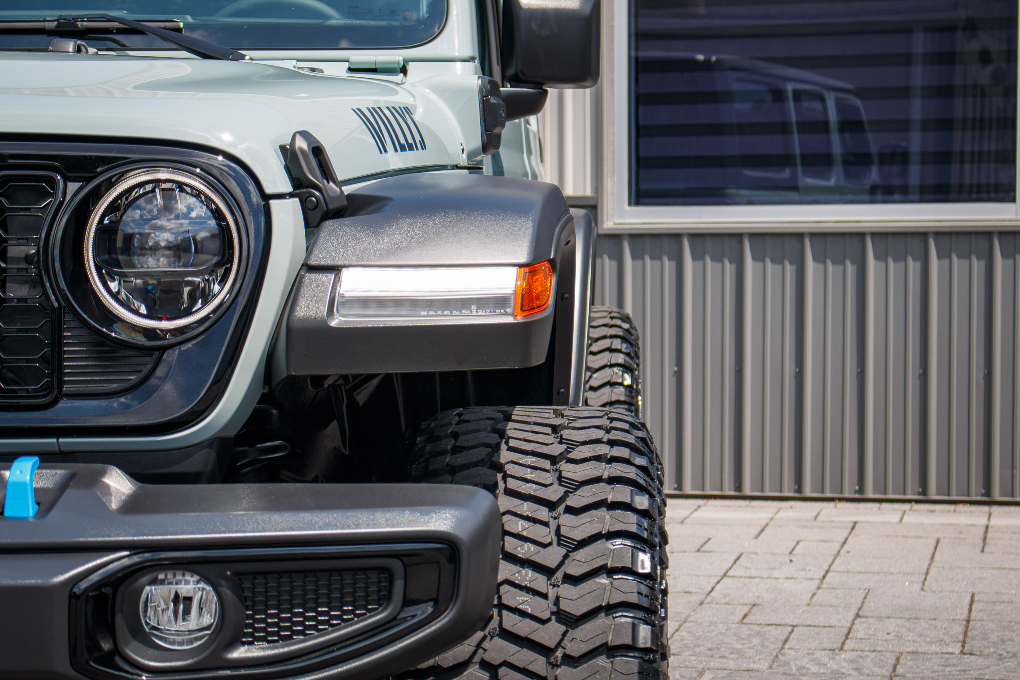 hood aftermarket light pod and rough country hood light bar on jeep wrangler