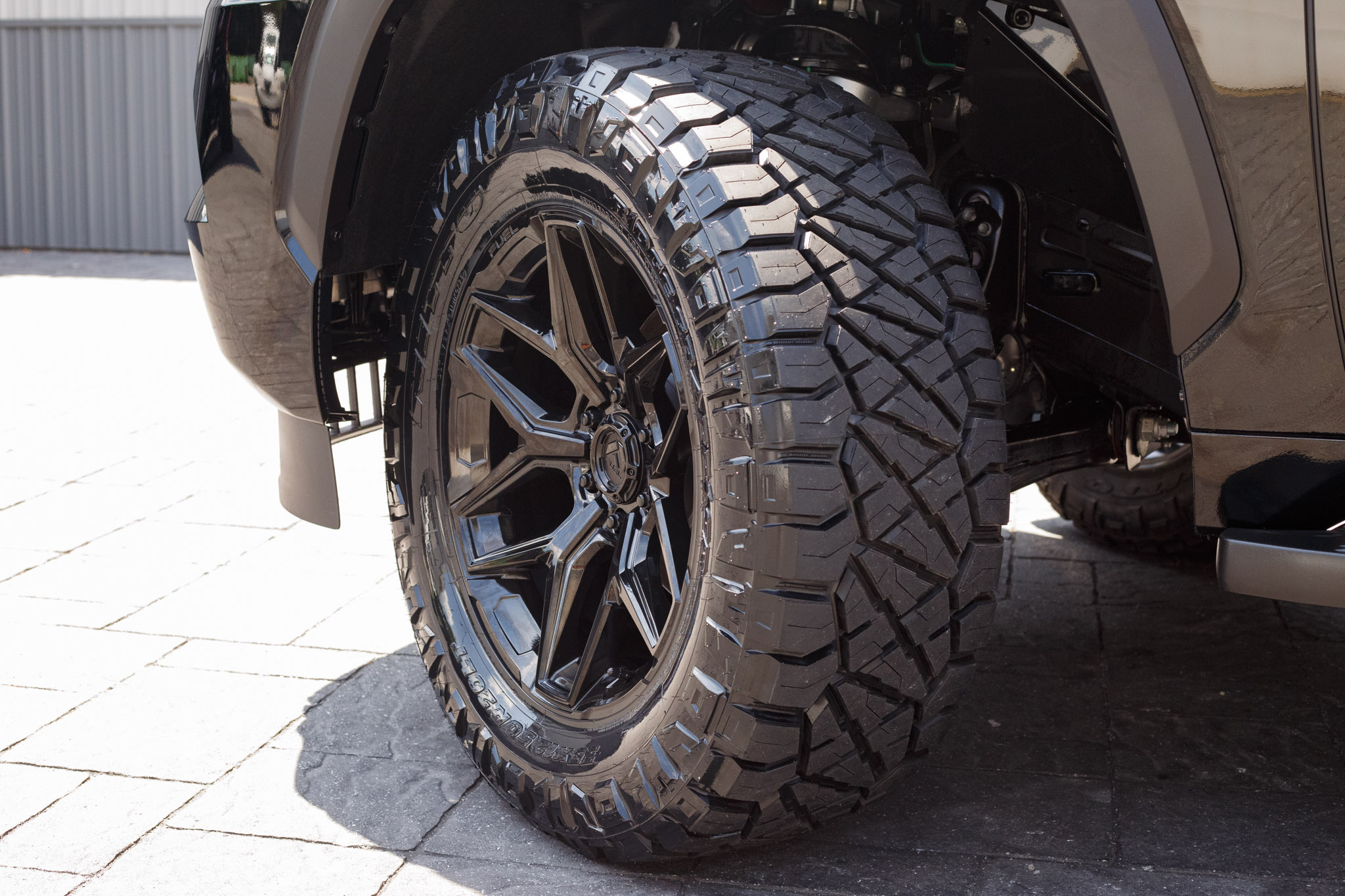 fuel stroke wheel sitting upright next to nitto tire