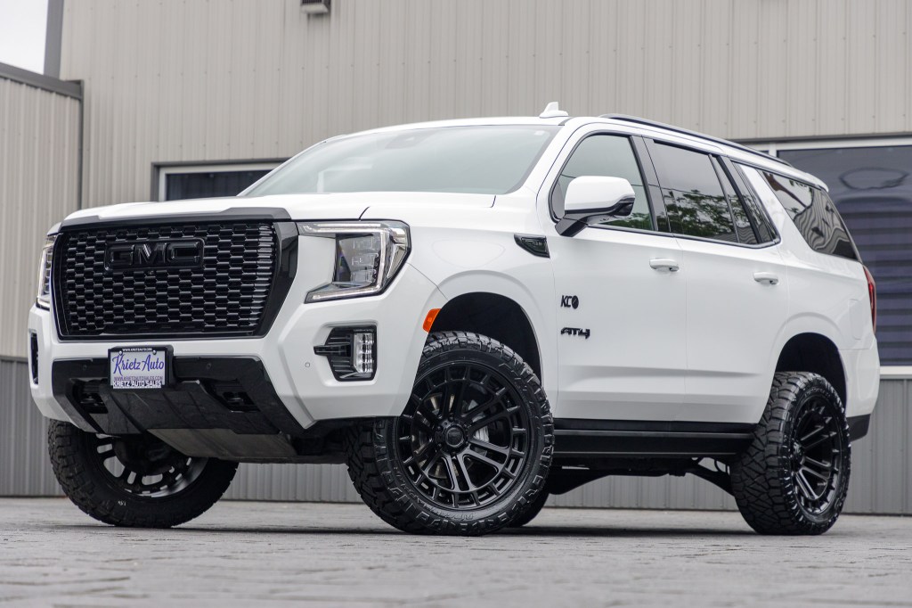 Compare 2023 GMC Yukon Color Match WHITE #PR134490 Tires: Bridgestone Alenza Wheels: GMC Stock Wheel Size: 22x9