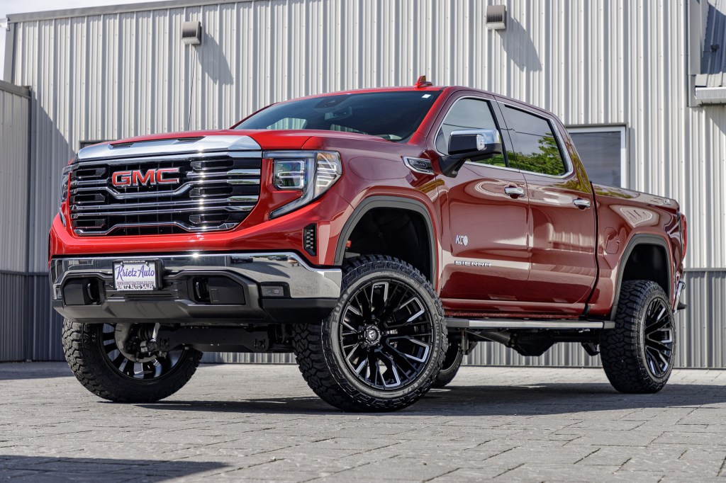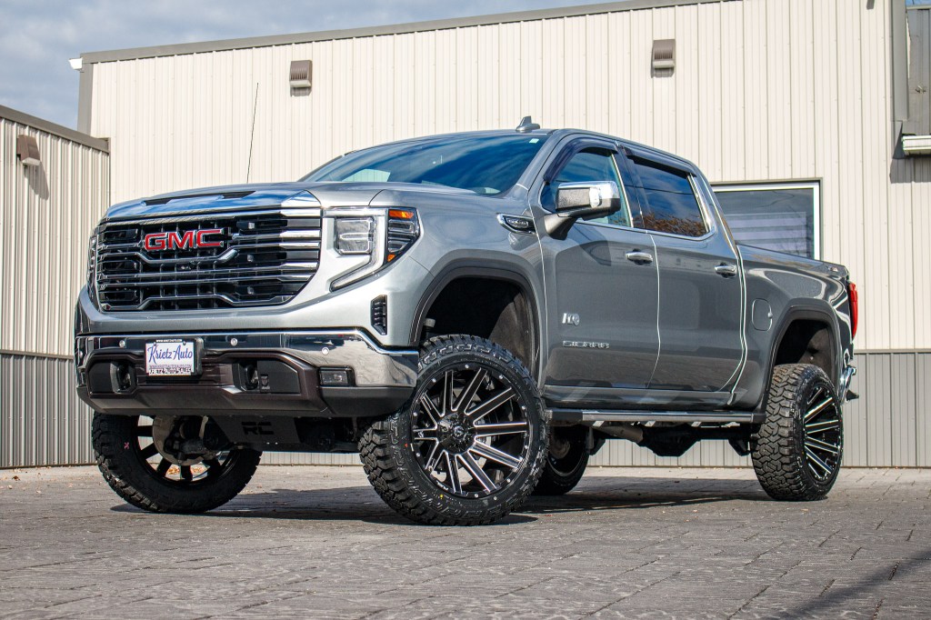 Lifted Trucks Gallery Home / Lifted Trucks Gallery LIFTED TRUCKS LIFTED HD TRUCKS LIFTED SPORT SUV LIFTED SUV STOCK SUSPENSION COLOR MATCH Search Custom Galleries Search Krietz Customs vehicles Year 1987(1)2018(1)2019(2)2020(11)2021(160)2022(274)2023(615)2024(936)2025(344)2026(2) Make Cadillac(2)Chevrolet(381)Ford(758)GMC(726)Jeep(240)Lexus(1)Ram(142)Toyota(96) Model 1500(115)2500(27)3500(1)4Runner(1)Blazer(1)Bronco(112)Canyon(1)Escalade(1)Escalade ESV(1)Expedition(2)F-150(477)F-250(42)F-250SD(2)F-350(28)F-450(95)F-450 Super Duty(1)Gladiator(9)GX550(1)Sequoia(10)Sierra 1500(440)Sierra 2500(100)Sierra 3500(70)Silverado 1500(321)Silverado 2500(12)Silverado 3500(18)Suburban(3)Tacoma(8)Tahoe(26)Tundra(77)Wrangler(231)Yukon(81)Yukon XL(35) Trim 1794 Edition(4)4D Crew Cab(1)AT4(127)AT4 Ultimate(3)AT4X(34)Badlands(17)Big Bend(22)Big Horn(57)Black Diamond(2)Capstone(3)Custom(19)Custom Trail Boss(13)Denali(285)Denali Ultimate(138)Elevation(55)Heritage(1)Heritage Edition(2)High Altitude 4xe(1)High Country(96)K5(1)King Ranch(14)Laramie(29)Lariat(141)Lighting Pro(1)Limited(58)Limited Denali(2)Limited Elevation(1)Limited Longhorn(1)Limited SLT(4)Lone Star(35)LT(19)LT Trail Boss(80)LTZ(37)Luxury+(1)Max Limited(1)Mojave(2)Outer Banks(35)Overland(4)Platinum(160)Premier(2)Pro(6)Raptor(1)Rebel(5)RST(79)Rubicon(5)Rubicon 392 Final Edition(1)Rubicon 4xe(6)Sahara(6)Sahara 4xe(14)SLE(3)SLT(66)Sport(7)Sport Platinum(1)SR(10)SR5(14)STX(11)Tradesman(3)TRD Off-Road(3)TRD Pro(3)TRD Sport(2)Tremor(39)Unlimited(1)Unlimited High Altitude 4xe(3)Unlimited Islander(1)Unlimited Rubicon(6)Unlimited Rubicon 4xe(29)Unlimited Sahara(11)Unlimited Sahara 4xe(104)Unlimited Sahara Altitude(16)Unlimited Sport(8)Unlimited Sport S(9)Unlimited Willys 4xe(4)Unlimited Willys Sport(1)Warlock(1)Wildtrak(29)Willys(1)Willys 4xe(1)XL(10)XLT(276)Z71(10)ZR2(26) Krietz Lifted No(110)Yes(2,239) Custom Paint No(2,030)Yes(318) Stance Aggressive; 3"+ Outside Fenders(2,212)Moderate, 1" Outside Fenders(3)Moderate; 2" Outside Fenders(54)Standard; Flush With Fenders(78)Very Aggressive; 5"+ Outside Fenders(1) Suspension Brand BDS(154)Chevrolet Factory(6)Cognito(29)CST(13)Eibach(1)Ford Factory(4)GMC Factory(77)Icon(1)Jeep Stock(30)Kelderman(1)McGaughys(2)ReadyLift(221)Rough Country(1,661)Stryker(3)Wicked(112)Zone(23) Suspension Size 1.75" Leveling Kit(2)2.25" Lift Kit(22)2.5" Leveling Kit(2)2.5" Lift Kit(225)2" Leveling Kit(4)2" Lift Kit(4)3.5" Lift Kit(89)3" Leveling(28)3" Lift Kit(73)4.5" Lift Kit(5)4"(1)4" Lift Kit(171)5" Lift Kit(166)6" Lift Kit(1,421)6”(1)7" Lift kit(5)8" Lift Kit(1)Stock Size(119) Wheel Brand 4Play(24)American Force(122)Arena(3)Black Rhino(3)Cadillac Stock(1)Chevrolet Stock(5)DDC(1)Ford Stock(1)Fuel(1,925)GMC Stock(76)Hostile(33)JTX Forged(38)KG1 Forged(10)Mickey Thompson(1)Moto Metal(1)Stealth Forged(1)TIS(96)Vossen(4)XD(1)XM Offroad(1) Wheel Model 4P06(12)4P80R(1)4P83(12)507B(1)544B(10)544BM(2)544C(1)544MB(1)547B(12)547BM(3)553B(5)553BM(1)554B(15)560B(2)560BM(1)563B(1)565BM(7)566B(23)566BM(12)Alpha(2)Amory(1)Apex(1)Arc(31)Assault(4)Avalon(3)Ballistic(1)Bandit(2)Battery(1)Battle(4)Bender(1)Blitz(50)Bludgeon(1)Brawl(82)Brawn(8)Burn(61)Business(12)Catalyst(56)Charger(10)Chief(2)Chopper(1)Cittation(2)Classic III(1)Combat(3)Conflict(2)Contra(48)Cortex(3)Covert(3)Crook(1)Cycle(1)D560(1)Deny SS(1)Derange(1)Doom(2)Empire(1)Evo(9)Extort(1)Flame(285)Flex(4)Flux(323)Frost(12)Glaze(1)H123(5)H91 Doom(1)Hardline(1)Heater(12)HF6-4(2)HF63(1)HFX2(1)Hoss(1)Hurricane(9)Ignite(1)Infiniti(1)Intrepid(6)Jacked(1)Javelin(3)Legion(2)Locus SS(1)Lotus(1)Massive(11)Maverick(1)MO970(1)Mojave(1)Nexus(2)Notch(5)Nova(1)Omen(3)Orion(1)Peak(1)Pinnacle(3)Piston(1)Plague(12)Provoke(1)Pulse(2)Quake(1)Rebar(429)Rebel(15)Reel(1)Revolt(1)Ridgecrest(1)Riptide(1)Runner(2)Savage(1)Scepter(1)Schizo(3)Sentinel(1)Siege(3)Slayer(4)Spectrum(2)Strike(239)Stroke(2)Super C(20)Supreme(3)The Shield(1)Thriller(6)Thrust(1)Titan(1)Tomahawk(1)Torture(1)Triad(1)Trident(3)Triton(1)Twitch(83)Typhoon(161)Vanquish(3)Warrior(4)XM-900(1)Zone(1) Wheel Diameter 17"(1)18"(6)20"(29)22"(2,138)24"(65)26"(101) Wheel Width 10"(87)12"(2,000)14"(20)8.25"(124)9.5(4)9"(100) Tire Brand AMP(77)Atturo(1)Avix(186)BFGoodrich(1)Bridgestone(82)Fortune(1)Fuel(22)Fury(1,527)Gladiator(1)Mickey Thompson(5)Nexen(1)Nitto(398)Rolling Big Power(1)TIS(3)Toyo(39)Venom Power(1)Versatyre(1) Tire Model Alenza(82)Baja Boss A/T(4)Baja Boss M/T(1)Country Hunter A/T(3)Country Hunter M/T(37)Country Hunter M/T 2(2)Country Hunter R/T(1,500)Gripper M/T(6)HD Rugged Terrain(1)Hercules(3)Mud Terrain KM3(1)Open Country A/T III(31)Open Country M/T(5)Open Country R/T(2)Open Country R/T Trail(3)Recon Grappler(14)Recon Grappler A/T(6)Repulsion M/T(1)Ridge Grappler(377)Roadian MTX(1)Terra Grappler G2(1)Terra Hunter R/T(1)Terrain Attack M/T A(75)Terrain Attack R/T(1)Tormenta R/T(1)Trail Blade A/T(1)Trailtek R/T(186)XComp M/T(1) Tire Size 275/50(7)275/60(1)285/55(4)295/50(49)295/65(1)305/55(1)315/45(9)315/50(5)33"(21)34"(4)35"(1,885)37"(288)37X13.50R22LT(1) Accessories Bed Cover(28)Custom Grille(40)Custom Lights(4)Fender Flares(17)KatZkin(167)Matte Roof Wrap(255)Power Running Boards(45)Tint(254)Tonneau Cover(17)Vinyl Decal(20) Sort By Sort by title (A-Z)Sort by title (Z-A)Sort by date added (oldest first)Sort by date added (newest first) Results Per Page 12243648 Clear filters Compare 2023 GMC Sierra 1500 Elevation #PG310797 Tires: Fury Country Hunter R/T Tire Size: 35" Wheels: Fuel Flame Wheel Size: 22x12 Compare 2023 GMC Sierra 1500 Elevation #PZ108892 Tires: Fury Country Hunter R/T Tire Size: 35" Wheels: Fuel Catalyst Wheel Size: 22x12 Compare 2023 GMC Sierra 1500 Elevation #PZ124759 Tires: Nitto Ridge Grappler Tire Size: 35" Wheels: Fuel Twitch Wheel Size: 22x12 Compare 2023 GMC Sierra 1500 Elevation #PZ125819 Tires: Fury Country Hunter R/T Tire Size: 35" Wheels: Fuel Burn Wheel Size: 22x12 Compare 2023 GMC Sierra 1500 Elevation #PZ135503 Tires: Fury Country Hunter R/T Tire Size: 35" Wheels: Fuel Flux Wheel Size: 22x12 Compare 2023 GM
