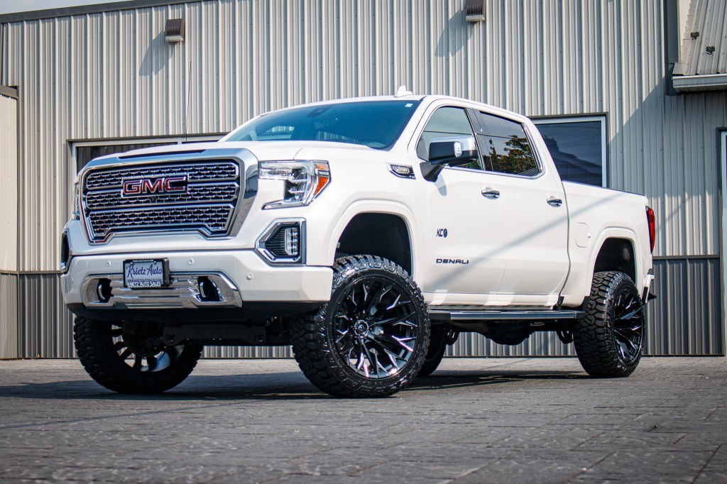 Compare 2021 GMC Sierra 1500 Denali #MG225390 Tires: Fury Country Hunter R/T Tire Size: 35" Wheels: Fuel Flame Wheel Size: 22x12