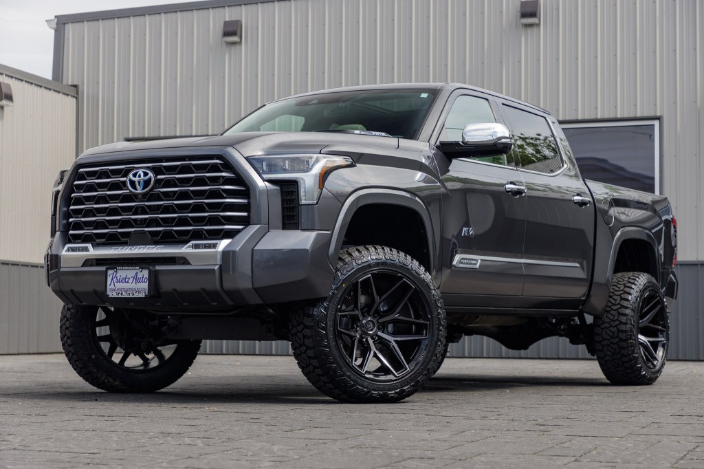 Compare 2023 Toyota Tundra 1794 Edition #PX081387 Tires: Fury Country Hunter R/T Tire Size: 35" Wheels: Fuel Rebar Wheel Size: 22x12