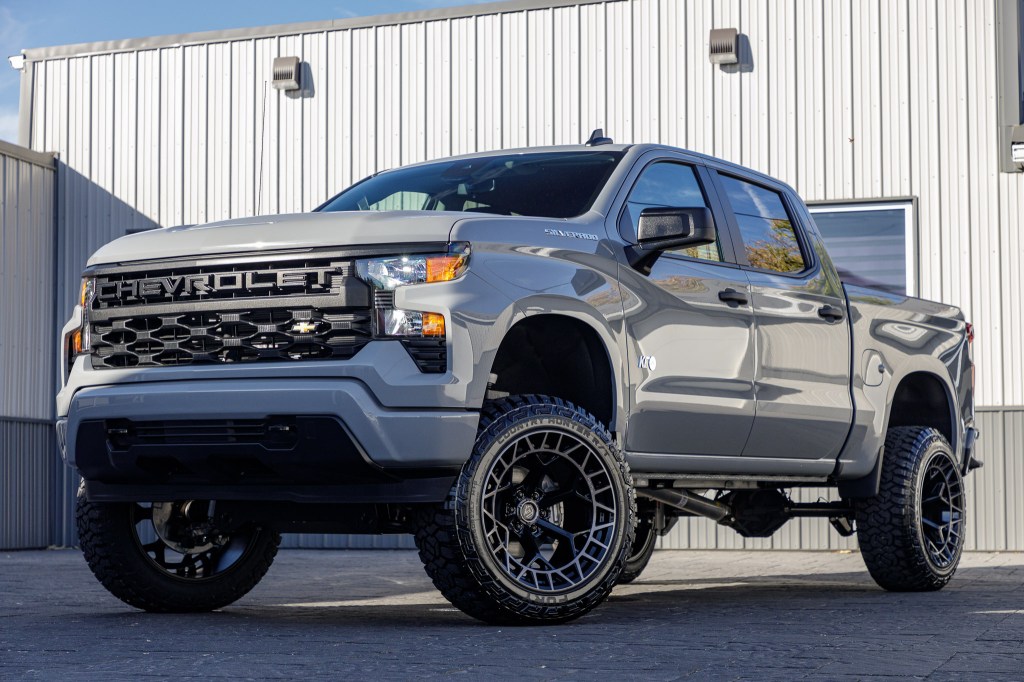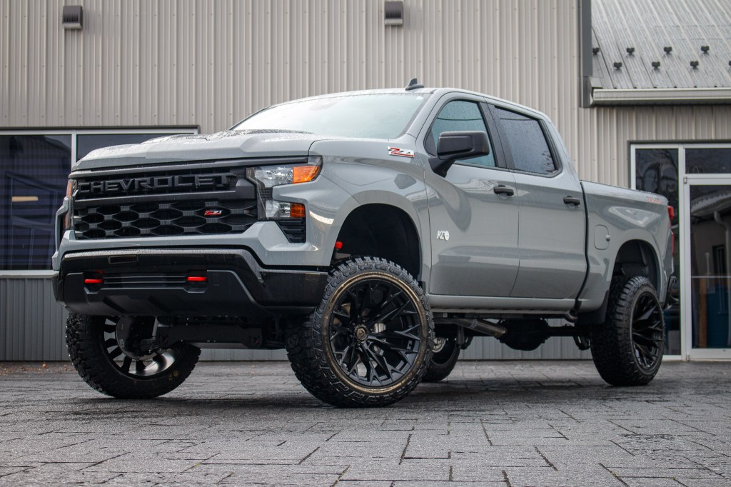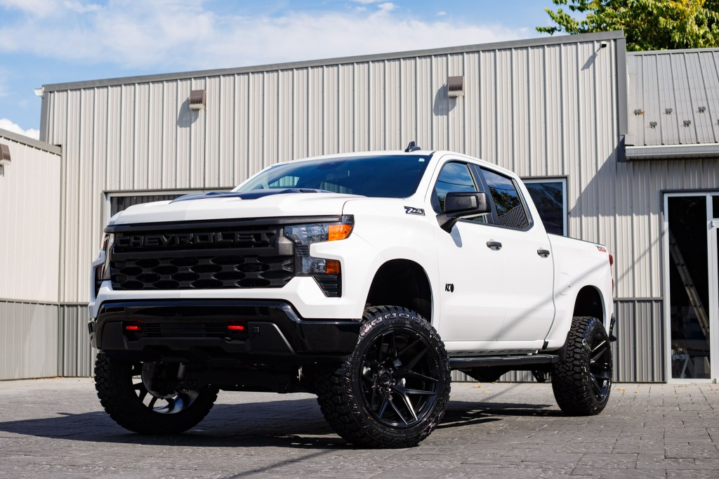 Compare 2024 Chevrolet Silverado 1500 Custom #RG445281 Tires: Avix Trailtek R/T Tire Size: 35" Wheels: TIS 566B Wheel Size: 22x12