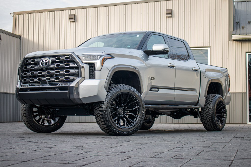 Compare 2023 Toyota Tundra Platinum #PX074701 Tires: Fury Country Hunter R/T Tire Size: 35" Wheels: Fuel Rebar Wheel Size: 22x12