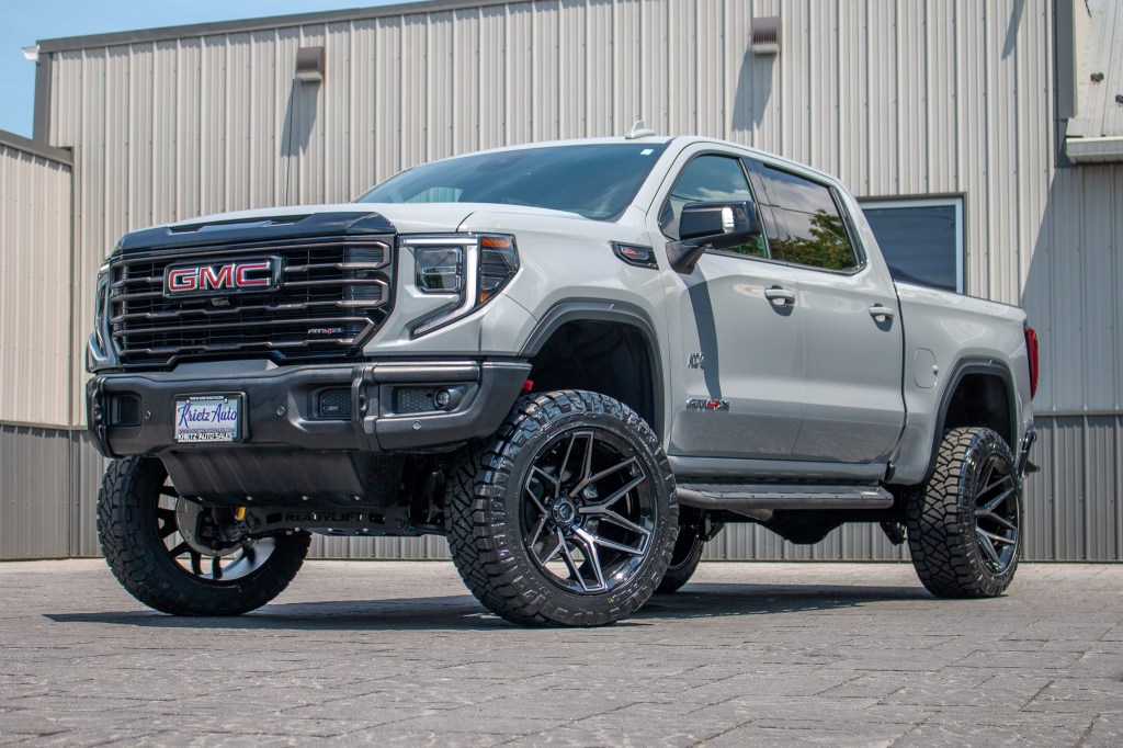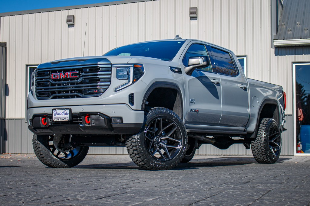 Lifted Trucks Gallery Home / Lifted Trucks Gallery LIFTED TRUCKS LIFTED HD TRUCKS LIFTED SPORT SUV LIFTED SUV STOCK SUSPENSION COLOR MATCH Search Custom Galleries Search Krietz Customs vehicles Year 1987(1)2018(1)2019(2)2020(11)2021(160)2022(280)2023(625)2024(956)2025(442)2026(11) Make Cadillac(2)Chevrolet(395)Ford(799)GMC(777)Jeep(262)Lexus(2)Ram(151)Toyota(102) Model 1500(124)2500(28)3500(2)4Runner(1)Blazer(1)Bronco(119)Canyon(2)Escalade(1)Escalade ESV(1)Expedition(2)F-150(499)F-250(46)F-350(30)F-450(98)F-450 Super Duty(6)Gladiator(10)GX550(2)Sequoia(10)Sierra 1500(474)Sierra 2500(106)Sierra 3500(79)Silverado 1500(333)Silverado 2500(12)Silverado 3500(18)Suburban(3)Tacoma(12)Tahoe(27)Tundra(79)Wrangler(252)Yukon(81)Yukon XL(35) Trim 1794 Edition(4)4D Crew Cab(2)AT4(136)AT4 Ultimate(3)AT4X(38)Badlands(18)Big Bend(23)Big Horn(63)Black Diamond(2)Capstone(3)Custom(20)Custom Trail Boss(15)Denali(297)Denali Ultimate(145)Elevation(57)Heritage(1)Heritage Edition(2)High Altitude 4xe(2)High Country(96)K5(1)King Ranch(14)Laramie(29)Lariat(148)Lighting Pro(1)Limited(59)Limited Denali(2)Limited Elevation(1)Limited Longhorn(2)Limited SLT(4)Lone Star(36)LT(19)LT Trail Boss(84)LTZ(39)Luxury+(2)Max Limited(1)Mojave(2)Outer Banks(39)Overland(4)Platinum(171)Premier(2)Pro(6)Raptor(1)Rebel(6)RST(80)Rubicon(5)Rubicon 392 Final Edition(1)Rubicon 4xe(8)Sahara(6)Sahara 4xe(18)SLE(4)SLT(81)Sport(8)Sport Platinum(1)Sport S(1)Sport S 4XE(5)SR(10)SR5(14)STX(11)Tradesman(3)TRD Off-Road(6)TRD Pro(4)TRD Sport(3)Tremor(48)Unlimited(1)Unlimited High Altitude 4xe(3)Unlimited Islander(1)Unlimited Rubicon(5)Unlimited Rubicon 4xe(31)Unlimited Sahara(11)Unlimited Sahara 4xe(106)Unlimited Sahara Altitude(16)Unlimited Sport(8)Unlimited Sport S(9)Unlimited Willys 4xe(4)Unlimited Willys Sport(1)Warlock(1)Wildtrak(30)Willys(1)Willys 4xe(6)XL(11)XLT(282)Z71(11)ZR2(29) Krietz Lifted No(112)Yes(2,381) Custom Paint No(2,151)Yes(341) Stance Aggressive; 3"+ Outside Fenders(2,351)Extreme; 4"+ Outside Fenders(1)Moderate, 1" Outside Fenders(4)Moderate; 2" Outside Fenders(56)Standard; Flush With Fenders(78)Very Aggressive; 5"+ Outside Fenders(1) Suspension Brand BDS(176)Chevrolet Factory(6)Cognito(29)CST(13)Eibach(1)Ford Factory(4)GMC Factory(78)Icon(1)Jeep Stock(33)Kelderman(1)McGaughys(2)ReadyLift(234)Rough Country(1,753)Stryker(3)Wicked(124)Zone(24) Suspension Size 1.75" Leveling Kit(2)2.25" Lift Kit(23)2.5" Leveling Kit(2)2.5" Lift Kit(246)2" Leveling Kit(4)2" Lift Kit(4)3.5" Lift Kit(96)3" Leveling(28)3" Lift Kit(78)4.5" Lift Kit(5)4"(3)4" Lift Kit(183)5" Lift Kit(179)6" Lift Kit(1,498)6”(2)7" Lift kit(6)8" Lift Kit(1)Stock Size(123) Wheel Brand 4Play(24)American Force(134)Arena(4)Black Rhino(3)Cadillac Stock(1)Chevrolet Stock(5)DDC(1)Ford Stock(1)Fuel(2,049)GMC Stock(76)Hostile(36)JTX Forged(38)KG1 Forged(10)KMC(1)Mickey Thompson(1)Moto Metal(1)Stealth Forged(1)TIS(98)Vossen(5)XD(1)XM Offroad(1) Wheel Model 4P06(12)4P80R(1)4P83(12)507B(1)544B(10)544BM(2)544C(1)544MB(1)547B(12)547BM(3)553B(5)553BM(1)554B(15)560B(2)560BM(1)563B(1)565BM(8)566B(24)566BM(12)Alpha(2)Amory(1)Apex(1)Arc(31)Assault(4)Avalon(3)Ballistic(1)Bandit(2)Battery(1)Battle(5)Bender(1)Blade(1)Blitz(50)Bludgeon(1)Brawl(87)Brawn(8)Burn(66)Business(12)Catalyst(63)Charger(10)Chief(2)Chopper(1)Cittation(2)Clash(1)Classic III(1)Combat(3)Conflict(2)Contra(49)Cortex(3)Covert(3)Crook(1)Cycle(1)D560(1)Deny SS(1)Derange(1)Doom(4)Doom Sd(1)Empire(1)Evo(9)Extort(1)Flame(311)Flex(4)Flux(333)Frost(12)Glaze(1)H123(8)H91 Doom(1)Hardline(1)Heater(12)HF6-4(2)HF63(1)HFX2(1)HFX4(1)Hoss(1)Hurricane(9)Ignite(1)Infiniti(1)Intrepid(6)Jacked(1)Javelin(3)KM542(1)Legion(2)Locus SS(1)Lotus(1)Massive(12)Maverick(1)MO970(1)Mojave(1)Nexus(2)Notch(5)Nova(1)Omen(3)Orion(1)Peak(1)Pinnacle(3)Piston(1)Plague(15)Provoke(2)Pulse(2)Quake(2)Rebar(476)Rebel(15)Reel(1)Revolt(2)Ridgecrest(1)Riptide(3)Runner(2)Savage(1)Scepter(1)Schizo(3)Sentinel(1)Siege(3)Slayer(4)Spectrum(2)Strike(255)Stroke(2)Super C(20)Supreme(3)Terra SS(1)The Shield(1)Thriller(6)Thrust(1)Titan(1)Tomahawk(1)Torture(1)Triad(1)Trident(3)Triton(1)Twitch(83)Typhoon(164)Vanquish(3)Vapor(1)Warrior(4)XM-900(1)Zone(1) Wheel Diameter 17"(1)18"(10)20"(30)22"(2,266)24"(65)26"(110) Wheel Width 10"(88)12"(2,126)14"(20)8.25"(133)9.5(5)9"(105) Tire Brand AMP(87)Atturo(1)Avix(195)BFGoodrich(1)Bridgestone(82)Fortune(1)Fuel(22)Fury(1,633)Gladiator(1)Mickey Thompson(5)Nexen(1)Nitto(414)Rolling Big Power(1)TIS(3)Toyo(42)Venom Power(1)Versatyre(1) Tire Model Alenza(82)Baja Boss A/T(4)Baja Boss M/T(1)Country Hunter A/T(3)Country Hunter M/T(37)Country Hunter M/T 2(2)Country Hunter R/T(1,606)COUNTRY HUNTER RT(1)Gripper M/T(6)HD Rugged Terrain(1)Hercules(3)Mud Terrain KM3(1)Open Country A/T III(32)Open Country M/T(5)Open Country R/T(2)Open Country R/T Trail(5)Recon Grappler(14)Recon Grappler A/T(6)Repulsion M/T(1)Ridge Grappler(392)Roadian MTX(1)Terra Grappler G2(1)Terra Hunter R/T(1)Terrain Attack M/T(1)Terrain Attack M/T A(84)Terrain Attack R/T(1)Tormenta R/T(1)Trail Blade A/T(1)Trailtek R/T(195)XComp M/T(1) Tire Size 275/50(7)275/60(1)285/55(5)295/50(50)295/65(1)305/55(1)315/45(9)315/50(5)33"(21)34"(4)35"(2,000)37"(313)37X13.50R22LT(1)37X13.50R26(1)RT35X12.50R22LT(1) Accessories Bed Cover(33)Custom Grille(40)Custom Lights(4)Fender Flares(17)KatZkin(191)Matte Roof Wrap(271)Power Running Boards(52)Tint(286)Tonneau Cover(17)Vinyl Decal(20) Sort By Sort by title (A-Z)Sort by title (Z-A)Sort by date added (oldest first)Sort by date added (newest first) Results Per Page 12243648 Clear filters Compare 2024 GMC Sierra 1500 AT4 #RZ105508 Tires: Fury Country Hunter R/T Tire Size: 35" Wheels: TIS 563B Wheel Size: 22x12 Compare 2024 GMC Sierra 1500 AT4 #RZ108910 Tires: Fury Country Hunter R/T Tire Size: 35" Wheels: Fuel Flame Wheel Size: 22x12 Compare 2024 GMC Sierra 1500 AT4 #RZ111454 Tires: Nitto Ridge Grappler Tire Size: 35" Wheels: Fuel Typhoon Wheel Size: 22x12 Compare 2024 GMC Sierra 1500 AT4 #RZ114499 Tires: Fury Country Hunter R/T Tire Size: 35" Wheels: Fuel Wheel Si
