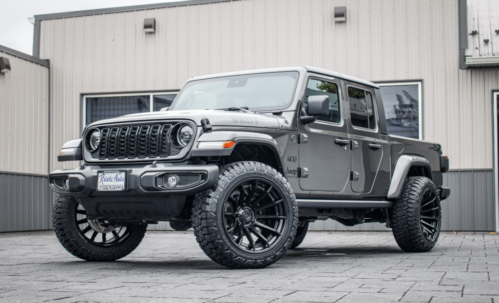 Compare 2024 Jeep Gladiator Willys #RL100985 Tires: Fury Country Hunter R/T Tire Size: 35" Wheels: Fuel Burn Wheel Size: 22x12
