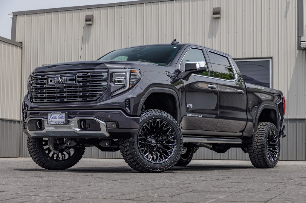 Lifted Trucks Gallery Home / Lifted Trucks Gallery LIFTED TRUCKS LIFTED HD TRUCKS LIFTED SPORT SUV LIFTED SUV STOCK SUSPENSION COLOR MATCH Search Custom Galleries Search Krietz Customs vehicles Year 1987(1)2018(1)2019(2)2020(11)2021(160)2022(280)2023(625)2024(956)2025(442)2026(11) Make Cadillac(2)Chevrolet(395)Ford(799)GMC(777)Jeep(262)Lexus(2)Ram(151)Toyota(102) Model 1500(124)2500(28)3500(2)4Runner(1)Blazer(1)Bronco(119)Canyon(2)Escalade(1)Escalade ESV(1)Expedition(2)F-150(499)F-250(46)F-350(30)F-450(98)F-450 Super Duty(6)Gladiator(10)GX550(2)Sequoia(10)Sierra 1500(474)Sierra 2500(106)Sierra 3500(79)Silverado 1500(333)Silverado 2500(12)Silverado 3500(18)Suburban(3)Tacoma(12)Tahoe(27)Tundra(79)Wrangler(252)Yukon(81)Yukon XL(35) Trim 1794 Edition(4)4D Crew Cab(2)AT4(136)AT4 Ultimate(3)AT4X(38)Badlands(18)Big Bend(23)Big Horn(63)Black Diamond(2)Capstone(3)Custom(20)Custom Trail Boss(15)Denali(297)Denali Ultimate(145)Elevation(57)Heritage(1)Heritage Edition(2)High Altitude 4xe(2)High Country(96)K5(1)King Ranch(14)Laramie(29)Lariat(148)Lighting Pro(1)Limited(59)Limited Denali(2)Limited Elevation(1)Limited Longhorn(2)Limited SLT(4)Lone Star(36)LT(19)LT Trail Boss(84)LTZ(39)Luxury+(2)Max Limited(1)Mojave(2)Outer Banks(39)Overland(4)Platinum(171)Premier(2)Pro(6)Raptor(1)Rebel(6)RST(80)Rubicon(5)Rubicon 392 Final Edition(1)Rubicon 4xe(8)Sahara(6)Sahara 4xe(18)SLE(4)SLT(81)Sport(8)Sport Platinum(1)Sport S(1)Sport S 4XE(5)SR(10)SR5(14)STX(11)Tradesman(3)TRD Off-Road(6)TRD Pro(4)TRD Sport(3)Tremor(48)Unlimited(1)Unlimited High Altitude 4xe(3)Unlimited Islander(1)Unlimited Rubicon(5)Unlimited Rubicon 4xe(31)Unlimited Sahara(11)Unlimited Sahara 4xe(106)Unlimited Sahara Altitude(16)Unlimited Sport(8)Unlimited Sport S(9)Unlimited Willys 4xe(4)Unlimited Willys Sport(1)Warlock(1)Wildtrak(30)Willys(1)Willys 4xe(6)XL(11)XLT(282)Z71(11)ZR2(29) Krietz Lifted No(112)Yes(2,381) Custom Paint No(2,151)Yes(341) Stance Aggressive; 3"+ Outside Fenders(2,351)Extreme; 4"+ Outside Fenders(1)Moderate, 1" Outside Fenders(4)Moderate; 2" Outside Fenders(56)Standard; Flush With Fenders(78)Very Aggressive; 5"+ Outside Fenders(1) Suspension Brand BDS(176)Chevrolet Factory(6)Cognito(29)CST(13)Eibach(1)Ford Factory(4)GMC Factory(78)Icon(1)Jeep Stock(33)Kelderman(1)McGaughys(2)ReadyLift(234)Rough Country(1,753)Stryker(3)Wicked(124)Zone(24) Suspension Size 1.75" Leveling Kit(2)2.25" Lift Kit(23)2.5" Leveling Kit(2)2.5" Lift Kit(246)2" Leveling Kit(4)2" Lift Kit(4)3.5" Lift Kit(96)3" Leveling(28)3" Lift Kit(78)4.5" Lift Kit(5)4"(3)4" Lift Kit(183)5" Lift Kit(179)6" Lift Kit(1,498)6”(2)7" Lift kit(6)8" Lift Kit(1)Stock Size(123) Wheel Brand 4Play(24)American Force(134)Arena(4)Black Rhino(3)Cadillac Stock(1)Chevrolet Stock(5)DDC(1)Ford Stock(1)Fuel(2,049)GMC Stock(76)Hostile(36)JTX Forged(38)KG1 Forged(10)KMC(1)Mickey Thompson(1)Moto Metal(1)Stealth Forged(1)TIS(98)Vossen(5)XD(1)XM Offroad(1) Wheel Model 4P06(12)4P80R(1)4P83(12)507B(1)544B(10)544BM(2)544C(1)544MB(1)547B(12)547BM(3)553B(5)553BM(1)554B(15)560B(2)560BM(1)563B(1)565BM(8)566B(24)566BM(12)Alpha(2)Amory(1)Apex(1)Arc(31)Assault(4)Avalon(3)Ballistic(1)Bandit(2)Battery(1)Battle(5)Bender(1)Blade(1)Blitz(50)Bludgeon(1)Brawl(87)Brawn(8)Burn(66)Business(12)Catalyst(63)Charger(10)Chief(2)Chopper(1)Cittation(2)Clash(1)Classic III(1)Combat(3)Conflict(2)Contra(49)Cortex(3)Covert(3)Crook(1)Cycle(1)D560(1)Deny SS(1)Derange(1)Doom(4)Doom Sd(1)Empire(1)Evo(9)Extort(1)Flame(311)Flex(4)Flux(333)Frost(12)Glaze(1)H123(8)H91 Doom(1)Hardline(1)Heater(12)HF6-4(2)HF63(1)HFX2(1)HFX4(1)Hoss(1)Hurricane(9)Ignite(1)Infiniti(1)Intrepid(6)Jacked(1)Javelin(3)KM542(1)Legion(2)Locus SS(1)Lotus(1)Massive(12)Maverick(1)MO970(1)Mojave(1)Nexus(2)Notch(5)Nova(1)Omen(3)Orion(1)Peak(1)Pinnacle(3)Piston(1)Plague(15)Provoke(2)Pulse(2)Quake(2)Rebar(476)Rebel(15)Reel(1)Revolt(2)Ridgecrest(1)Riptide(3)Runner(2)Savage(1)Scepter(1)Schizo(3)Sentinel(1)Siege(3)Slayer(4)Spectrum(2)Strike(255)Stroke(2)Super C(20)Supreme(3)Terra SS(1)The Shield(1)Thriller(6)Thrust(1)Titan(1)Tomahawk(1)Torture(1)Triad(1)Trident(3)Triton(1)Twitch(83)Typhoon(164)Vanquish(3)Vapor(1)Warrior(4)XM-900(1)Zone(1) Wheel Diameter 17"(1)18"(10)20"(30)22"(2,266)24"(65)26"(110) Wheel Width 10"(88)12"(2,126)14"(20)8.25"(133)9.5(5)9"(105) Tire Brand AMP(87)Atturo(1)Avix(195)BFGoodrich(1)Bridgestone(82)Fortune(1)Fuel(22)Fury(1,633)Gladiator(1)Mickey Thompson(5)Nexen(1)Nitto(414)Rolling Big Power(1)TIS(3)Toyo(42)Venom Power(1)Versatyre(1) Tire Model Alenza(82)Baja Boss A/T(4)Baja Boss M/T(1)Country Hunter A/T(3)Country Hunter M/T(37)Country Hunter M/T 2(2)Country Hunter R/T(1,606)COUNTRY HUNTER RT(1)Gripper M/T(6)HD Rugged Terrain(1)Hercules(3)Mud Terrain KM3(1)Open Country A/T III(32)Open Country M/T(5)Open Country R/T(2)Open Country R/T Trail(5)Recon Grappler(14)Recon Grappler A/T(6)Repulsion M/T(1)Ridge Grappler(392)Roadian MTX(1)Terra Grappler G2(1)Terra Hunter R/T(1)Terrain Attack M/T(1)Terrain Attack M/T A(84)Terrain Attack R/T(1)Tormenta R/T(1)Trail Blade A/T(1)Trailtek R/T(195)XComp M/T(1) Tire Size 275/50(7)275/60(1)285/55(5)295/50(50)295/65(1)305/55(1)315/45(9)315/50(5)33"(21)34"(4)35"(2,000)37"(313)37X13.50R22LT(1)37X13.50R26(1)RT35X12.50R22LT(1) Accessories Bed Cover(33)Custom Grille(40)Custom Lights(4)Fender Flares(17)KatZkin(191)Matte Roof Wrap(271)Power Running Boards(52)Tint(286)Tonneau Cover(17)Vinyl Decal(20) Sort By Sort by title (A-Z)Sort by title (Z-A)Sort by date added (oldest first)Sort by date added (newest first) Results Per Page 12243648 Clear filters Compare 2025 GMC Sierra 1500 Denali Ultimate #SZ179882 Tires: Fury Country Hunter R/T Tire Size: 35" Wheels: Fuel Flame Wheel Size: 22x12 Compare 2025 GMC Sierra 1500 Denali Ultimate #SZ181436 Tires: Fury Country Hunter R/T Tire Size: 35" Wheels: Fuel Typhoon Wheel Size: 22x12 Compare 2025 GMC Sierra 1500 Denali Ultimate #SZ181822 Tires: Fury Country Hunter R/T Tire Size: 35" Wheels: Fuel Rebar Wheel Size: 22x12 Compare 2025 GMC Sierra 1500 Denali Ultimate #SZ209918 Tires: Fury Co