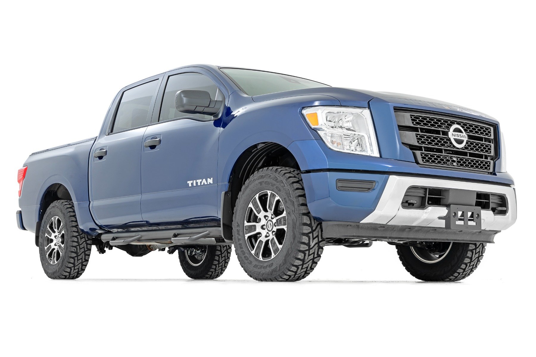Increased Ground Clearance. Level your second-generation Titan from front to rear while giving your truck a more aggressive look with Rough Country???s 2-inch Leveling Lift Kit for Nissan Titan trucks. Nissan's Titan comes with a factory rake, leaving the rear much higher than the front. This simple solution raises the front and rear, providing additional ride height while leveling the front with the rear for a more striking visual appeal and the ability to run larger tires and wheels.