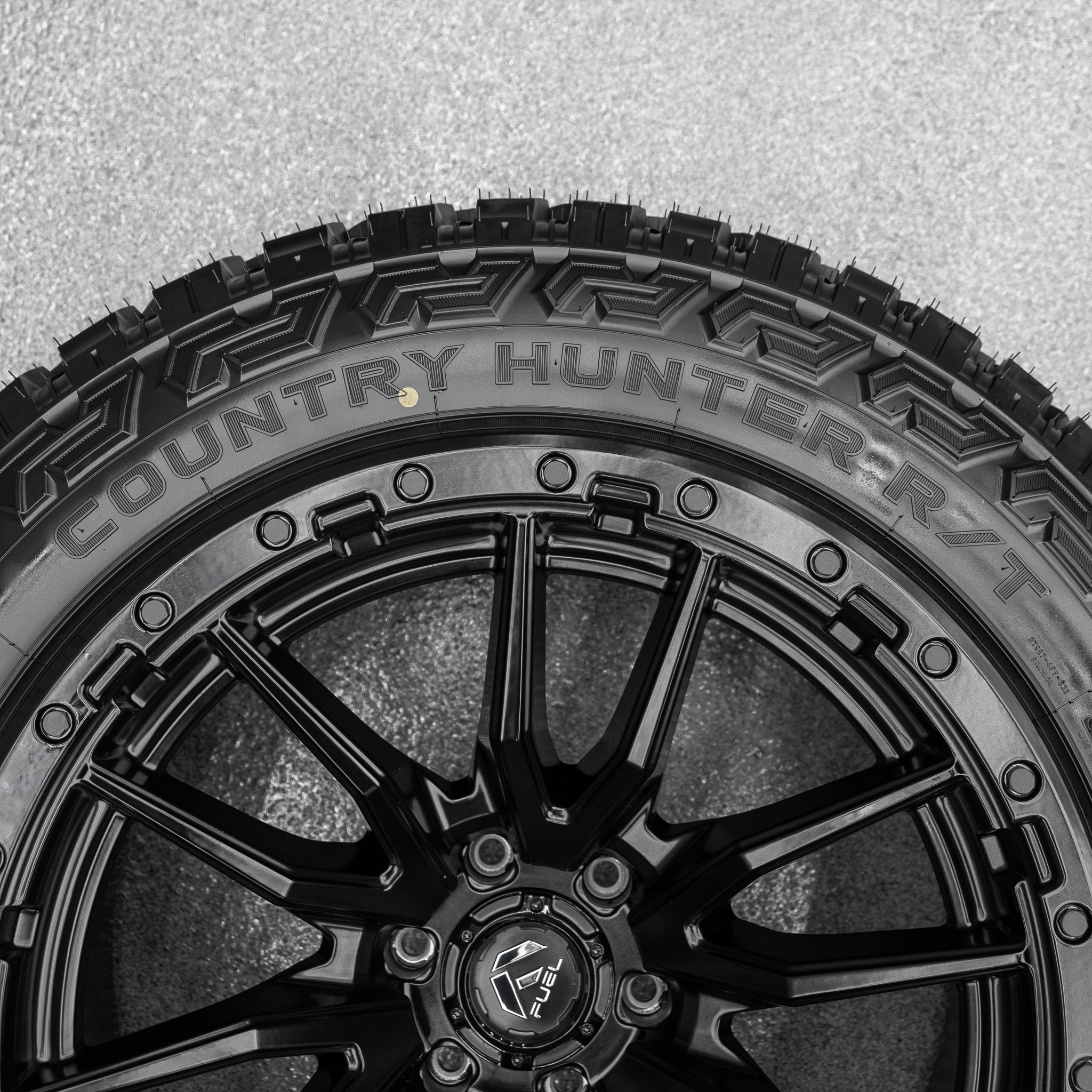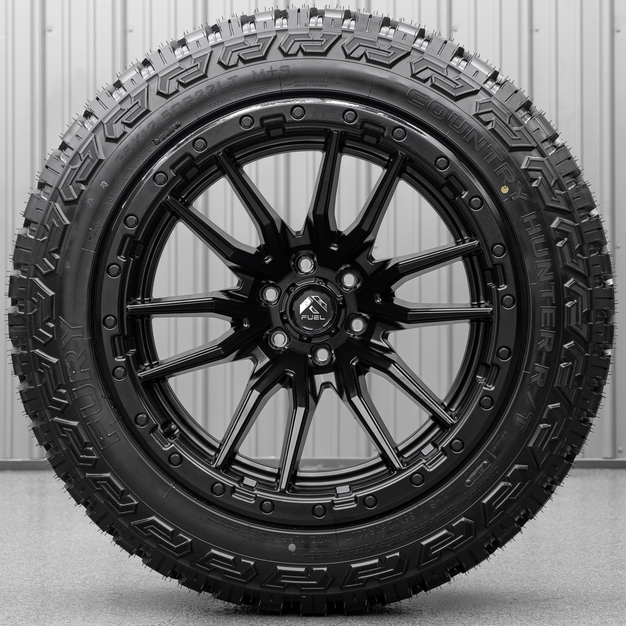 This package is the Fuel Contra Matte Black wheel with Fury Country Hunter R/T tires. When ordering a wheel and tire package select your desired wheel size above with the filter drop downs. Your order quantity of 1 is a wheel and tire package set of 4 wheels and tires arriving mounted and balanced. Upon receiving your order, a Krietz Customs representative will contact you to confirm fitment and tire size.