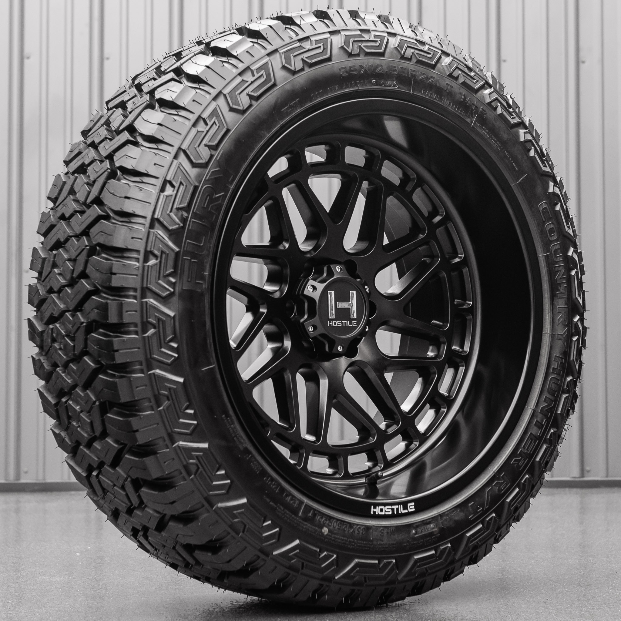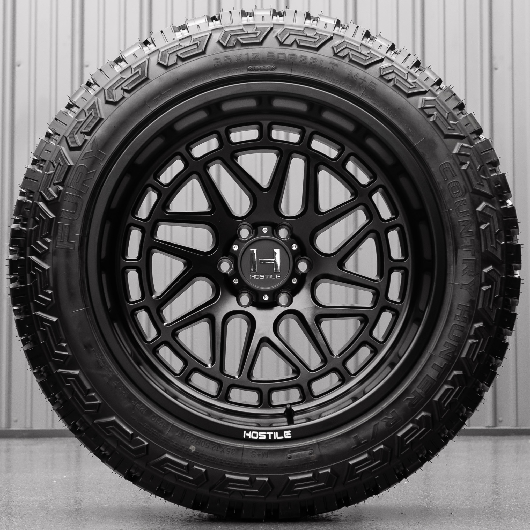 This package is the Hostile Reaper Asphalt wheel with Fury Country Hunter R/T tires. When ordering a wheel and tire package select your desired wheel size above with the filter drop downs. Your order quantity of 1 is a wheel and tire package set of 4 wheels and tires arriving mounted and balanced. Upon receiving your order, a Krietz Customs representative will contact you to confirm fitment and tire size.